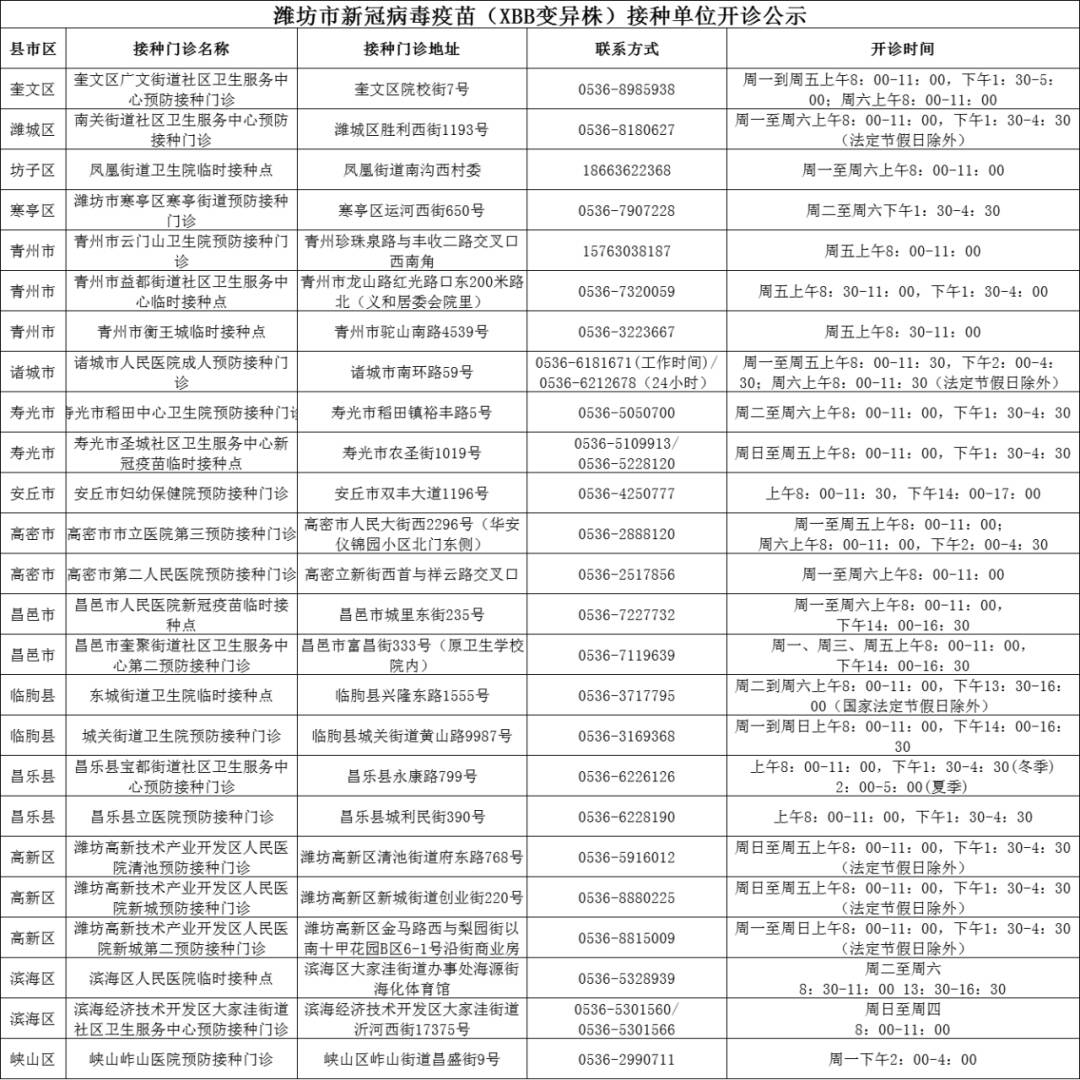 附:潍坊市含XBB变异株抗原成分的新冠病毒疫苗接种单位开诊公示