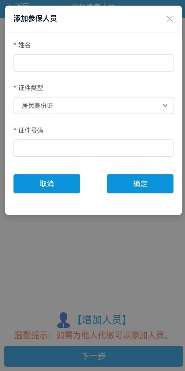 如未添加参保人或需要新增参保人,点击“增加人员”,输入相关信息增加需缴费的人员。