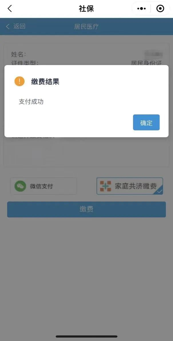 进入缴费页面,核对金额、社保经办机构等信息无误后,选择“家庭共济缴费”,点击“缴费”。