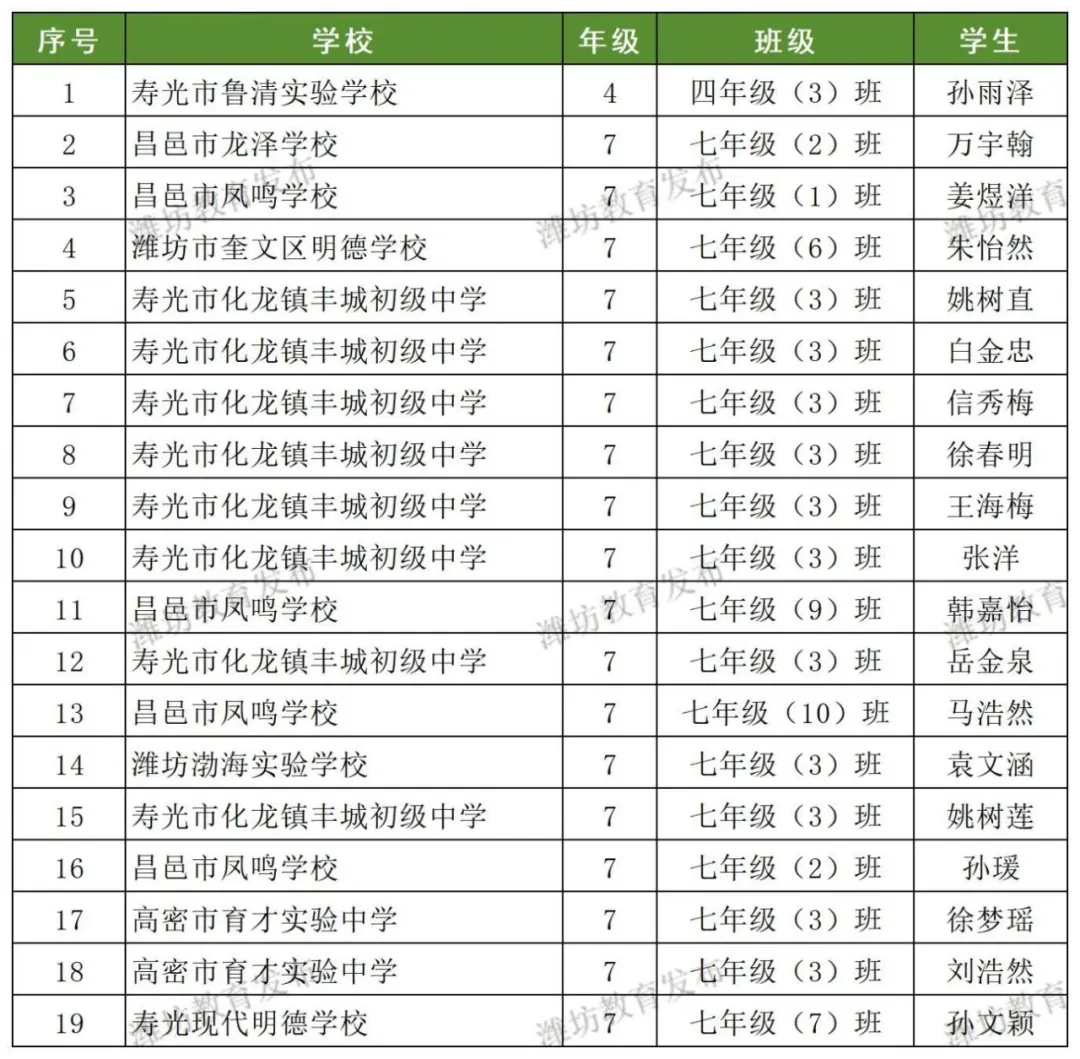 近日,省教育厅官网发布了《关于公布“寒假读好书”活动推介名单的公示》,依据“在线练习”“在线闯关”等环节综合评定,潍坊市拟入选19名齐鲁书香之星、25名优秀指导教师、12个优秀组织单位。下面随小编一起来看吧!1.潍坊市教育局2.寿光市教育和体育局3.昌邑市教育和体育局4.昌乐县教育和体育局5.奎文区教育和体育局6.坊子区教育和体育局7.寿光现代明德学校8.寿光市弥水未来学校9.寿光市建桥学校10.昌邑市育秀学校11.寿光市高新技术开发区小学12.寿光市世纪小学