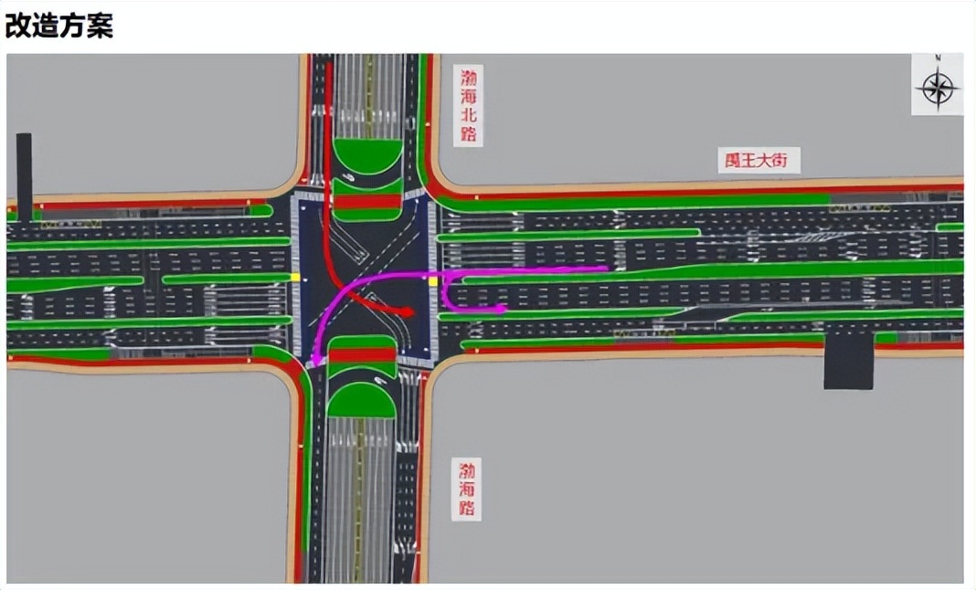 改造之后,能解决禹王大街各方向间的交通转换问题:车辆从地表离开北站后可在该路口左转往东行驶,不再绕路。车辆从地下环路出来后可在该路口左转往南行驶或掉头往东行驶,不再绕路;且能分流过境交通,进一步缓解站南街交通压力。