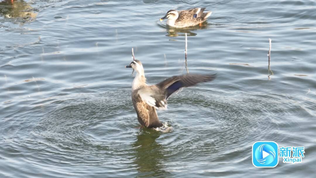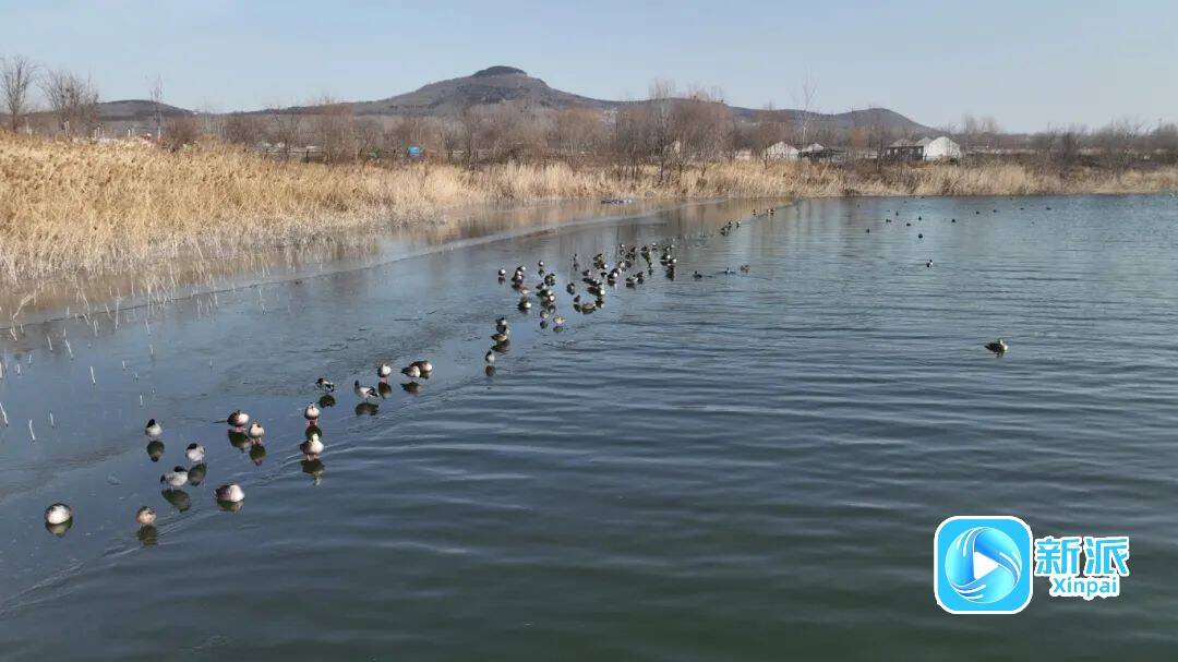 百余只野鸭栖息、游弋,为美丽山水带来无限浪漫与灵动。