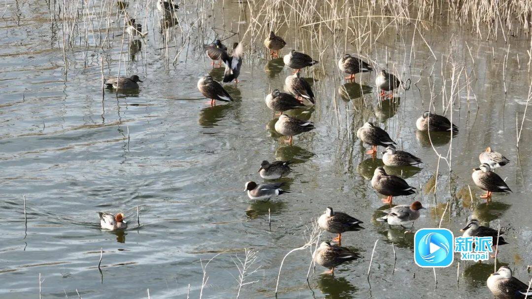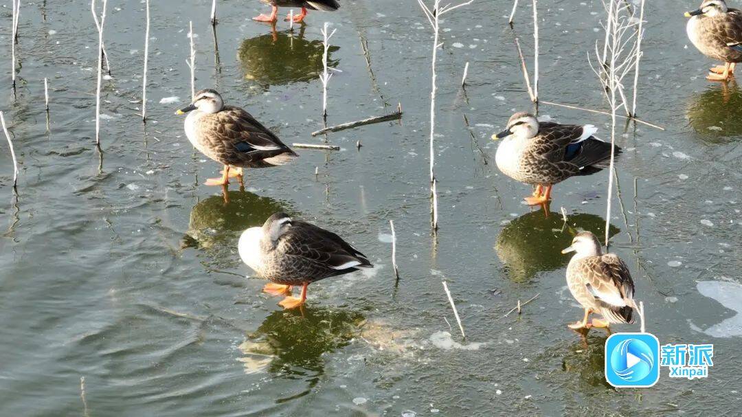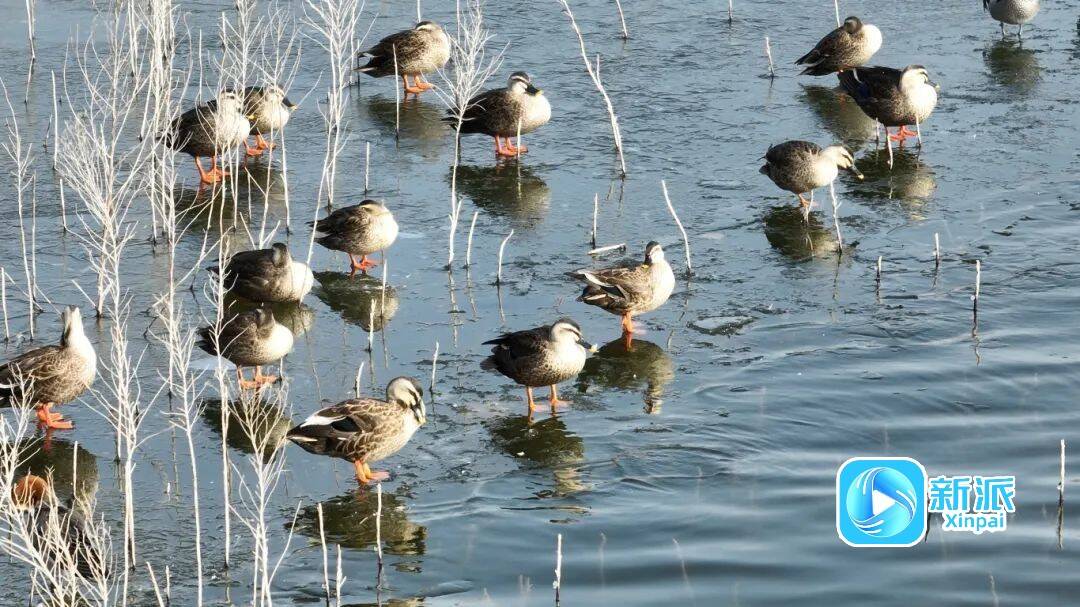 快看!就在芦苇湖畔的冰水间,有一群小精灵,九龙湖水暖它们先知。