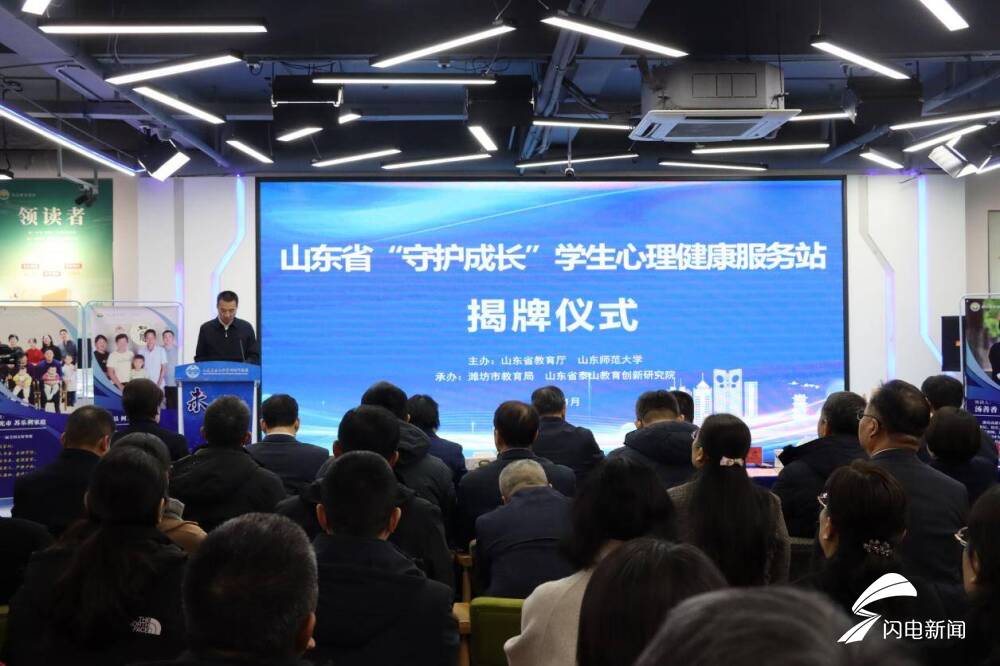 1月15日,山东省“守护成长”学生心理健康服务站揭牌仪式在潍坊市举行。山东省教育厅总督学王志刚,山东师范大学党委书记冯继康,潍坊市政府副市长陈端梅,潍坊市教育局党组书记、局长,潍坊市委教育工委常务副书记王霞,山东省泰山教育创新研究院院长王清林出席活动。参加此次活动的还有潍坊市教育局及各县市区教体局相关负责同志、部分中小学校长代表以及山东师范大学相关部门、学院的主要负责同志。