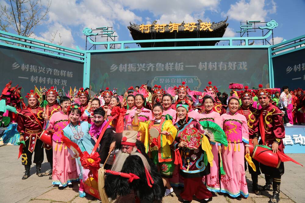 戏曲演员在“乡村振兴齐鲁样板——村村有好戏”启动仪式后合影。