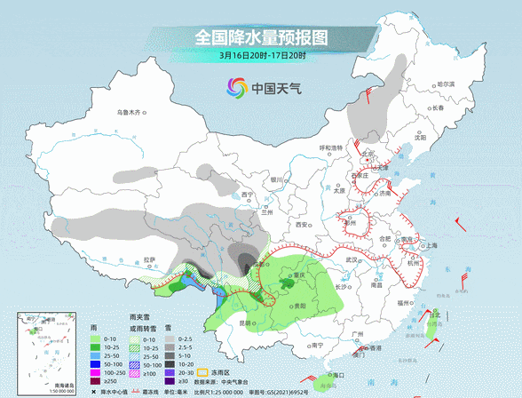 其中,今天夜间至18日,西藏东部、青海南部、川西高原、云南北部等地有小到中雪或雨夹雪,局地有大雪,西藏东南部、云南西北部有中到大雨。