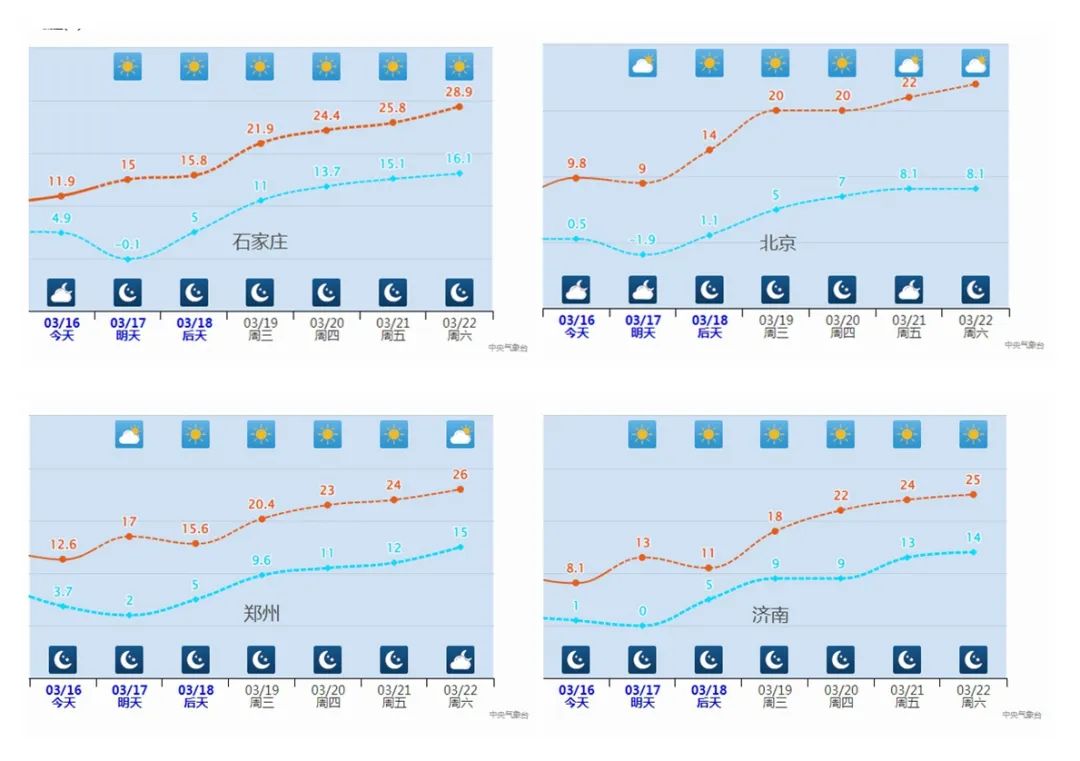这次升温也将使得北京、天津、河北、山东、河南一带或迈入春天的大门。
