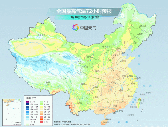 西北地区以及中东部大部最高气温累积升温幅度将超过10℃,长江以北地区升幅普遍超过15℃,内蒙古东部、河北北部、辽宁西部部分地区升幅可达20℃以上。