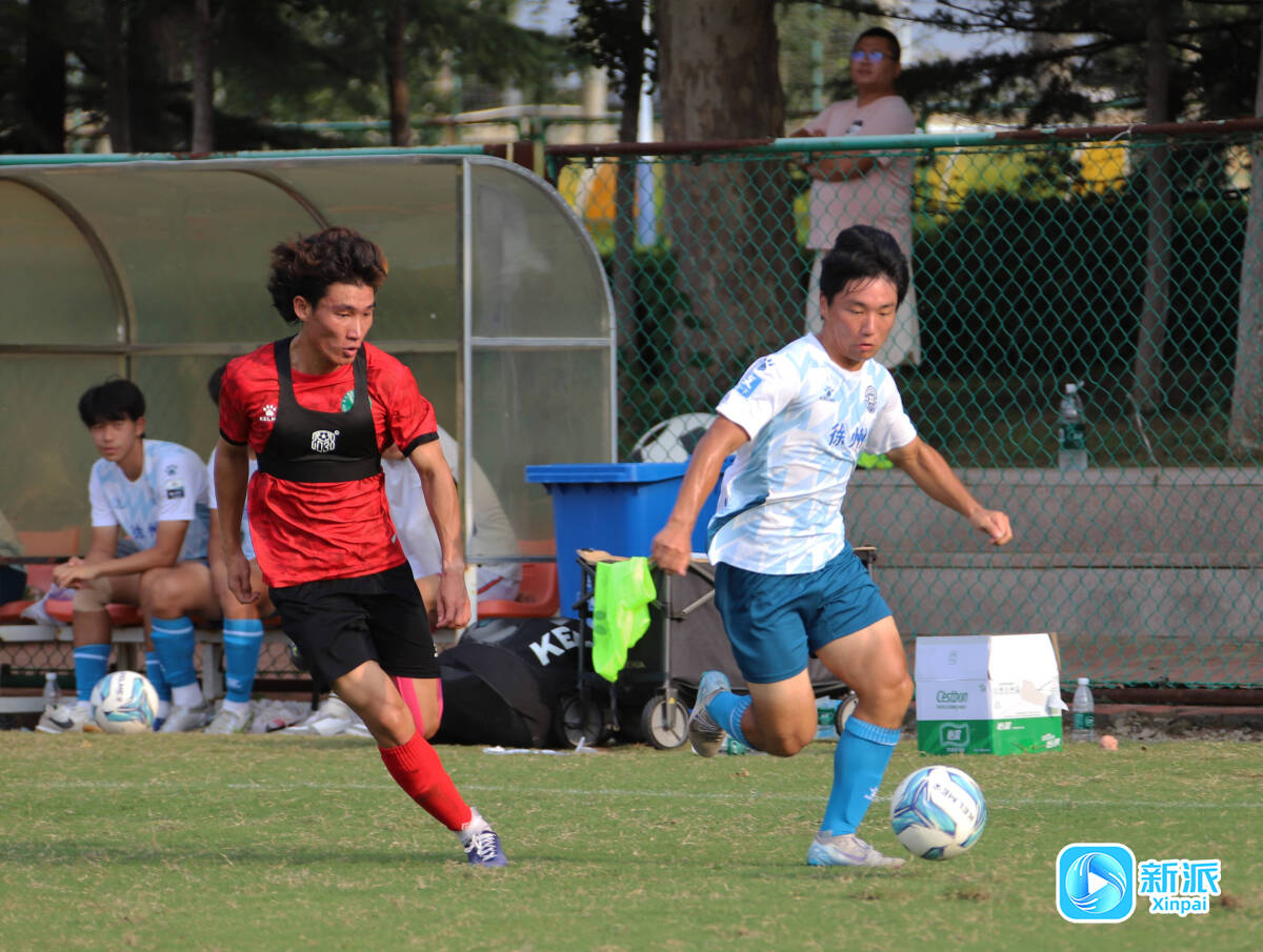 新派讯 为积极备战9月中旬开赛的2025年鲁超联赛,8月27日下午,潍坊足球队与到访的苏超劲旅徐州队,在山东鲁能泰山足球学校进行了一场高质量教学比赛。双方在90分钟内上演激烈对抗,均以达到练兵、检验阵容和战术为主要目的。