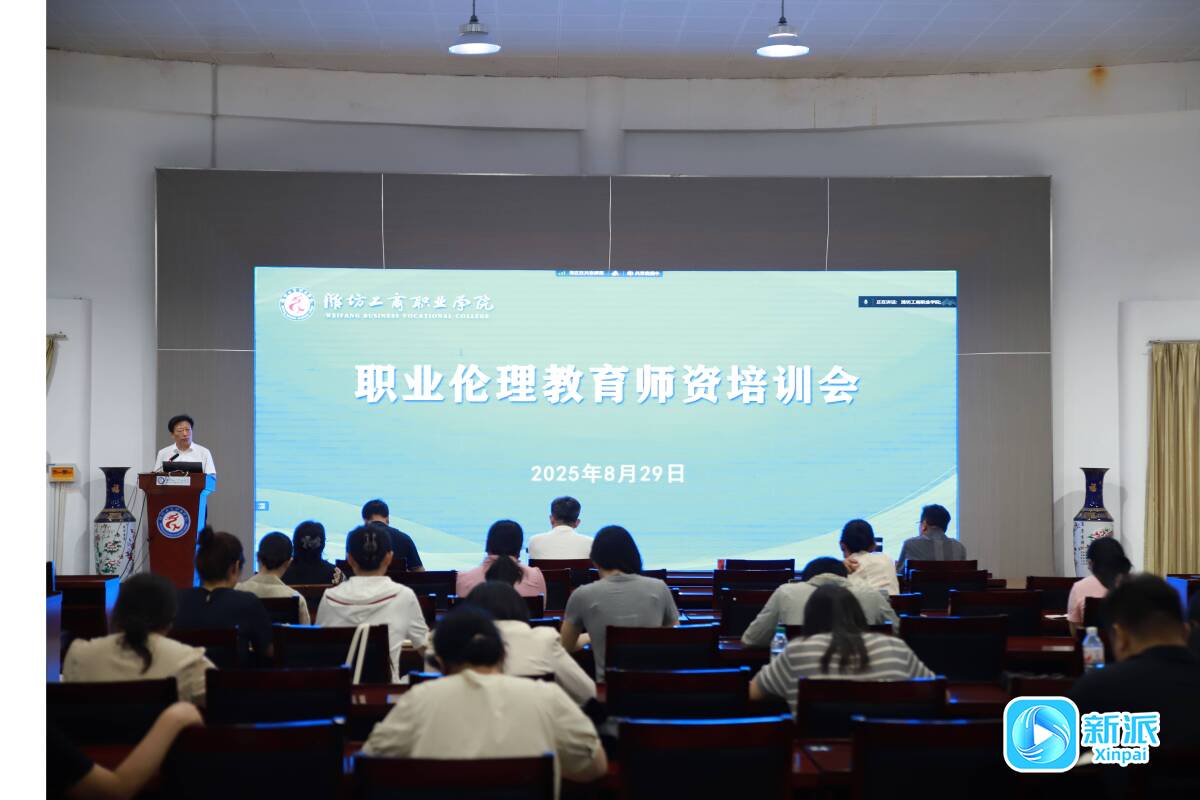 新派讯 8月29日,职业伦理教育联合教研室在潍坊工商职业学院设主会场,在贵州六盘水、浙江台州、广东深圳、山东德州、山东潍坊等地设分会场,面向15所院校400多位授课教师开展了一次别开生面的职业伦理教育师资培训。职业伦理教育联合教研室主任、教育部人文社科重点研究基地伦理学与道德建设研究中心主任、中国人民大学哲学院副院长张霄,职业伦理教育联合教研室顾问、中国矿业大学乡村振兴研究中心副主任、教育部职成教司职业院校德育工作处原处长邬跃分别作《职业伦理教育的重要性》《从伦理与道德互为表里审视职业院校的职业道德教育》学术报告,职业伦理教育联合教研室常务副主任、潍坊工商职业学院副校长郭素森作职业伦理教育试点内容解析和教学课件解读。职业伦理教育联合教研室顾问、山东省教育厅职业教育处一级主任科员李胜红致辞,潍坊工商职业学院校长张绍秋主持了培训会。