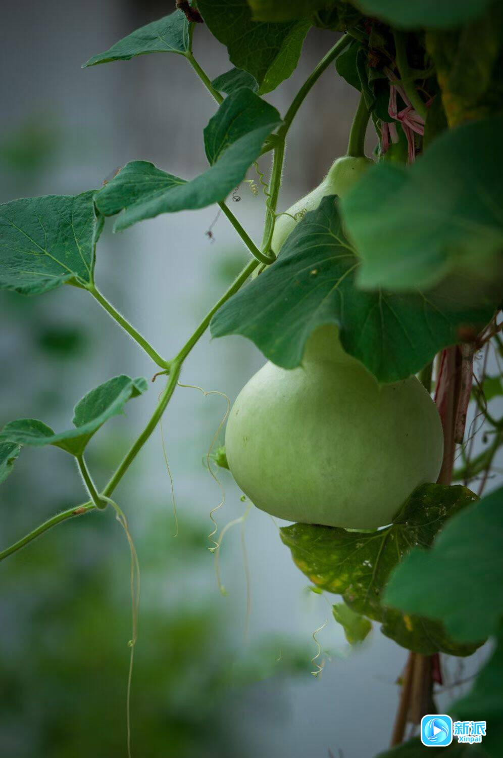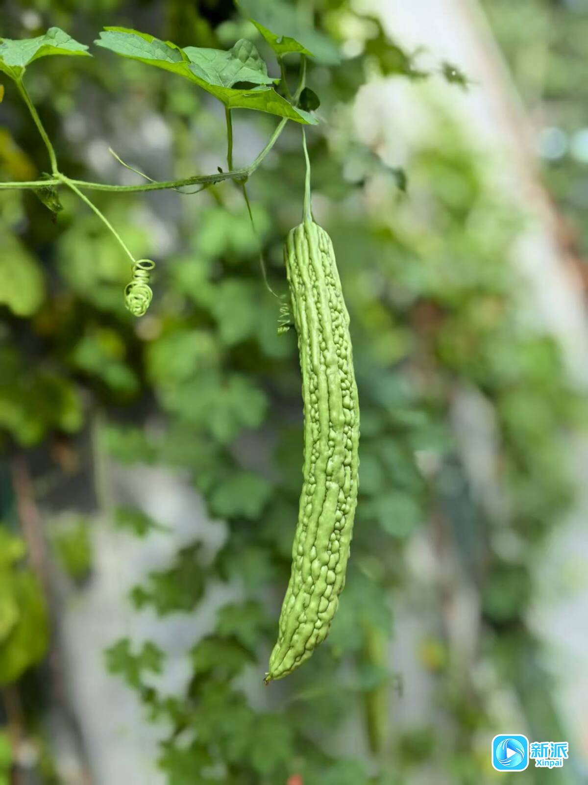 潍坊临朐嵩山脚下,扁豆花披着淡紫的釉色,饱满翠绿的苦瓜挂满枝头。