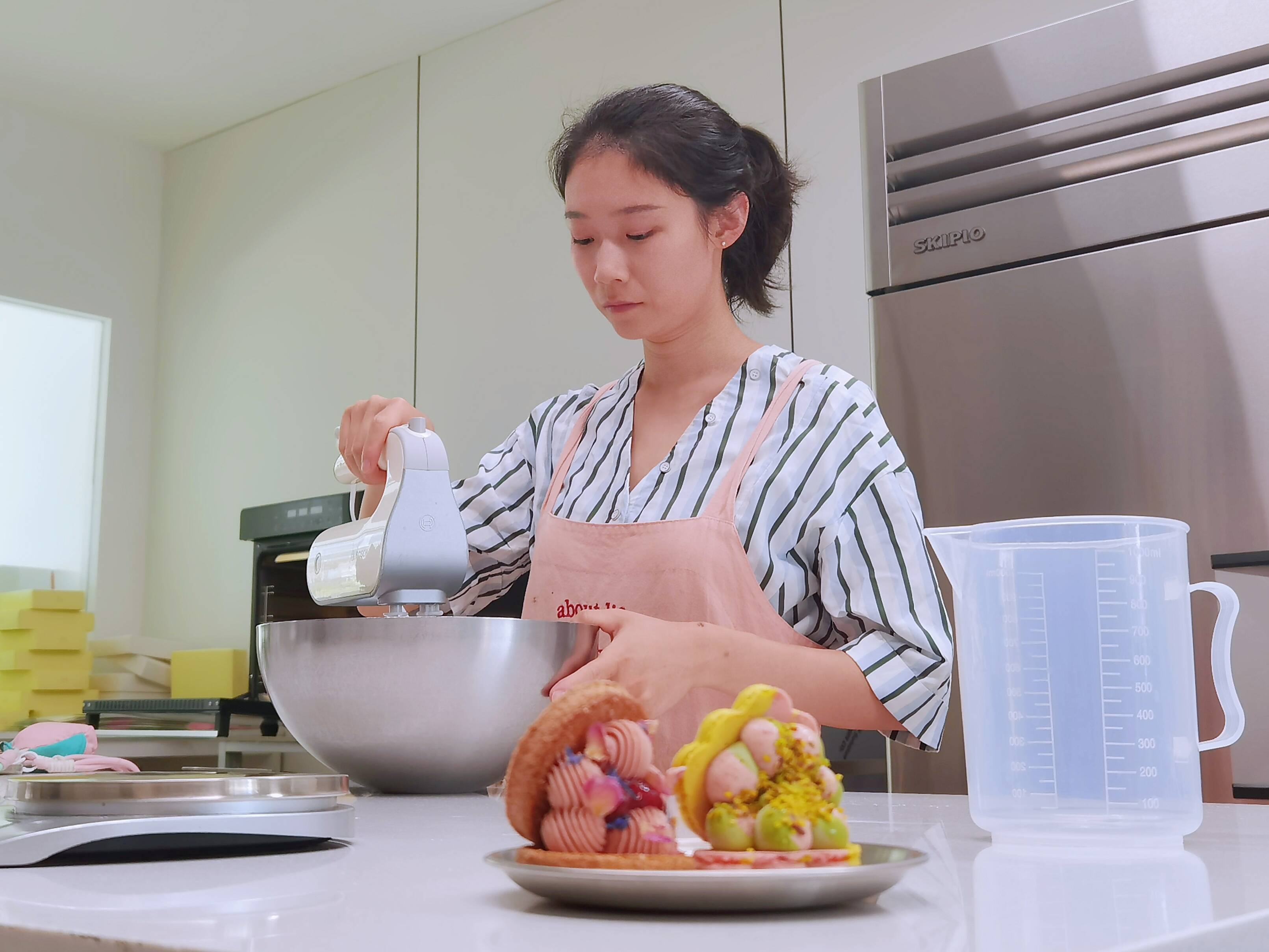 说着,单子涵做好清洗工作,系上围裙,开始准备一天所用的食材。“以前我是学舞蹈的,从小喜欢做手工,对甜品也有一种骨子里的喜爱,便想开一家属于自己的、独特的甜品店。”单子涵几年前萌生了创业的想法,经过一番深思熟虑,决定开甜品店。
