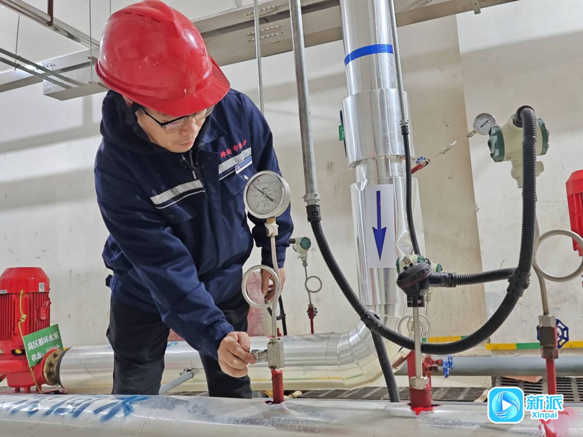 在碧水蓝天小区换热站,市热力公司工作人员检查设备运行情况。(资料图)