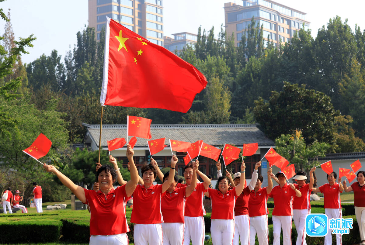 9月29日,市民在潍坊植物园载歌载舞,喜迎国庆节。她们有的挥舞国旗、歌唱祖国,有的现场扭起了热情欢快的秧歌,用各自的方式表达对祖国的祝福。据了解,这些市民都是文艺爱好者,自发组织起来为迎接国庆营造气氛。