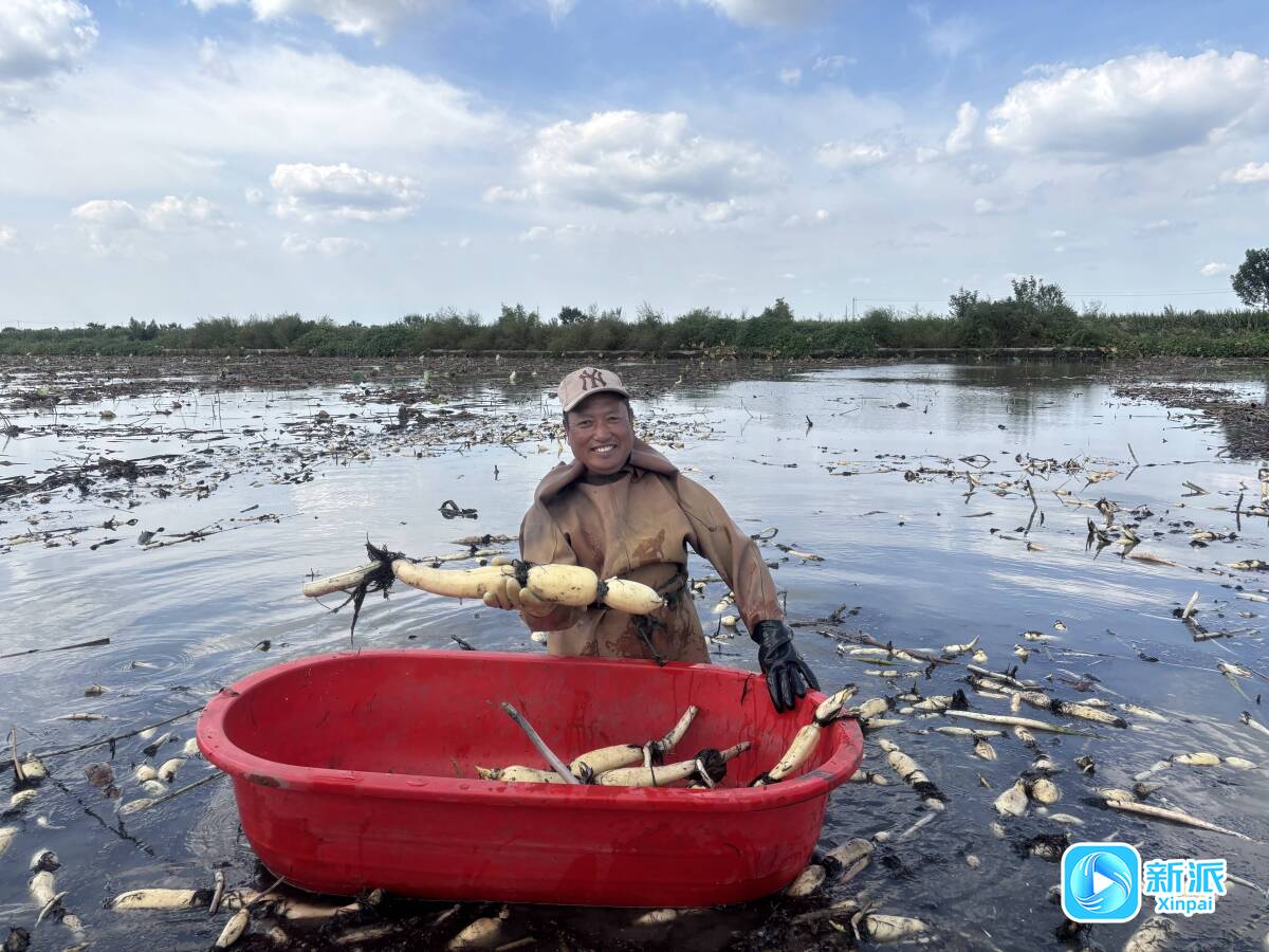 王济涛展示新采收的藕。
