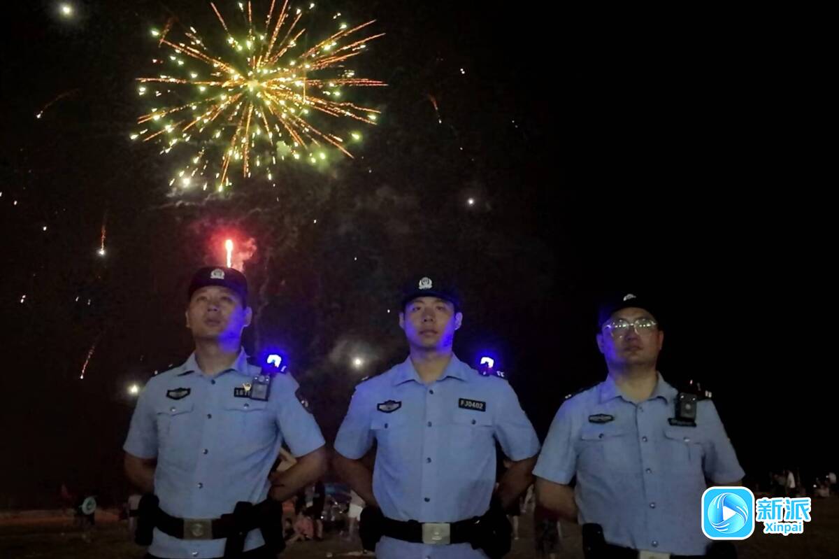从清晨第一缕阳光洒向沙滩,到深夜最后一朵烟花落下,北港派出所民警、辅警也从未缺席。