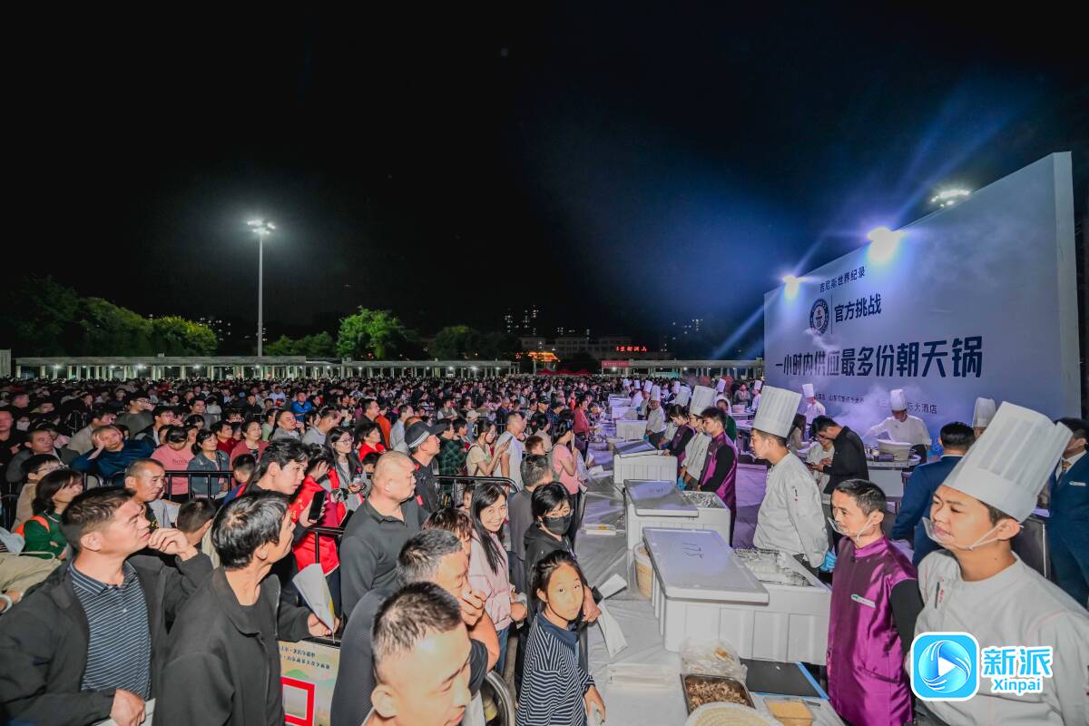 由潍坊3家酒店发起的“一小时内供应最多份朝天锅”吉尼斯世界纪录挑战现场成为市民关注的一大焦点。3口直径超2米的朝天大锅热气腾腾,20名专业师傅默契配合,现场制作并向市民免费赠送潍坊特色名吃朝天锅。最终,团队以一小时制作并分发2728卷的速度挑战成功,成为新的吉尼斯世界纪录。