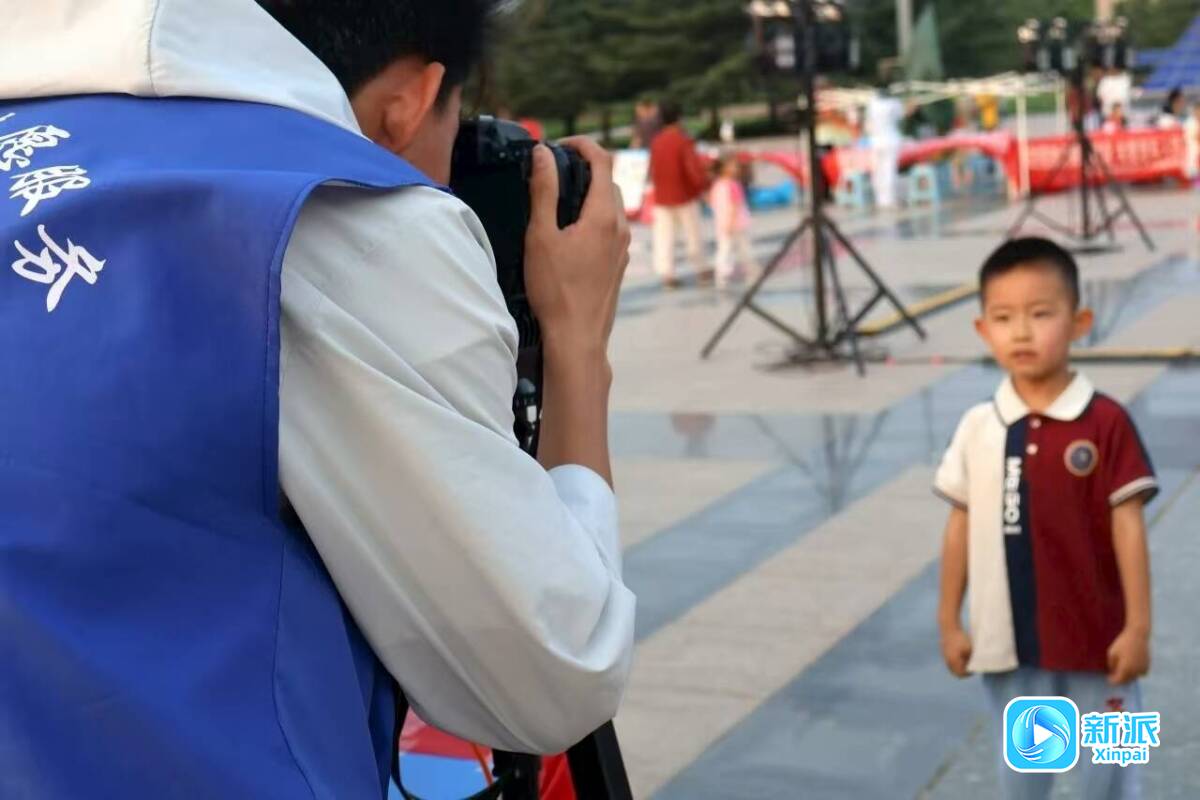 志愿者们免费为小朋友拍照并利用AI技术生成未来模样。