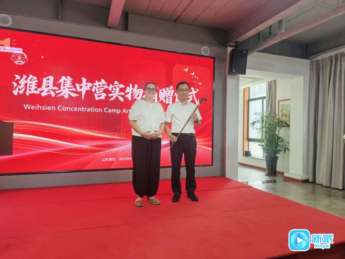 8月7日,一场承载着厚重历史与跨国情谊的实物捐赠仪式在潍县西方侨民集中营旧址博物馆举行。英国籍潍县集中营被关押侨民罗伯特·杰里米·艾伦的女儿艾玛偕全家,跨越重洋,将父亲生前保存的一根意义非凡的手杖,捐赠给博物馆,为这段特殊历史增添了实物见证。这份捐赠的意义远超实物本身,侨民后代将战争遗物转化为和平信物,成为潍县西方侨民集中营旧址博物馆和平教育实践的新载体。通过这场活动向世界人民特别是青年一代,展现和平、包容的中国形象,传播中国的“和平之声”。值潍县西方侨民集中营解放80周年之际,8月16日至17日,我市将举行二战期间亚洲集中营的历史、记忆与文化遗产国际学术交流活动,通过学术交流、幸存侨民及侨民亲属座谈会等活动,弘扬和平理念,共谋和平、共护和平、共享和平。