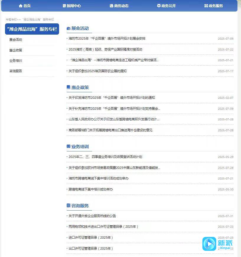 新派讯 “以前查政策得翻遍五六个网站,现在点开市商务局官网和微信公众号推出的‘潍企潍品出海’专栏,参加境外展会和政策宣讲活动一眼就看清,这真帮我们省了大事!”近日,潍坊某工艺品出口企业负责人张女士对着电脑屏幕感慨。这背后,是潍坊市商务局以政务公开为抓手,破解民营企业“政策找不到、用不好”难题的实在举措。