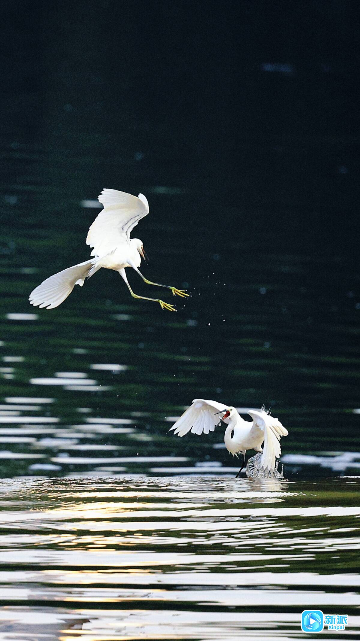 摄影师们架起“长枪短炮”,或蹲或立,屏息凝神。有人专候白鹭振翅的刹那,雪白羽翼划破水光的惊艳;有人偏爱捕捉争食的逗趣瞬间,看长喙轻点水面荡开圈圈涟漪。