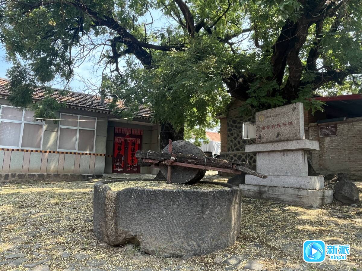 古槐树旁的石碾