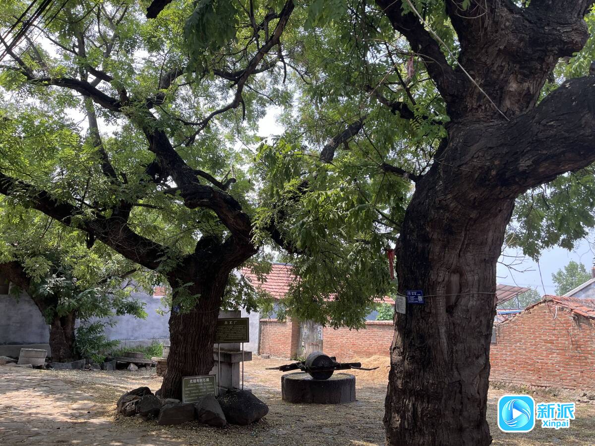 记者观察到,这三棵古槐长势良好、枝繁叶茂,枝丫间不时传来鸟儿的“低语”。在古槐树旁边,有一盘清光绪年间的石碾,当年兵工厂的工人正是用它碾制火药,用来制造手榴弹等武器。布满岁月痕迹的旧石碾与老槐树,不仅承载着村民的乡愁,更镌刻着安丘大地上曾发生的红色故事。