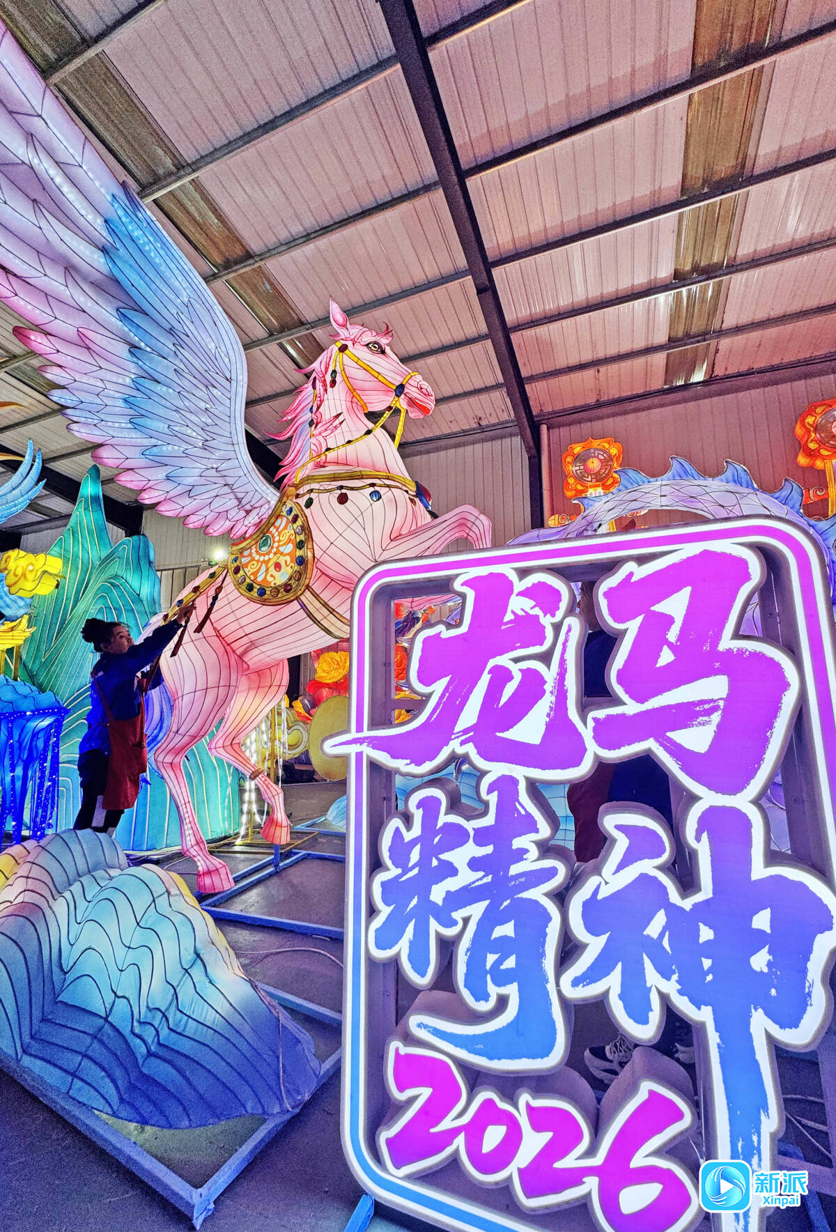 记者看到,其中一组造型别致的“龙马精神”花灯格外吸睛。这组花灯分为两部分,一匹粉色天马踏蹄飞腾,一条巨龙盘旋而上,龙马相互凝视、威武磅礴,结合现代技术,在传递美好祝福的同时,充分表达“龙马精神”,给人们带来视觉上的享受。