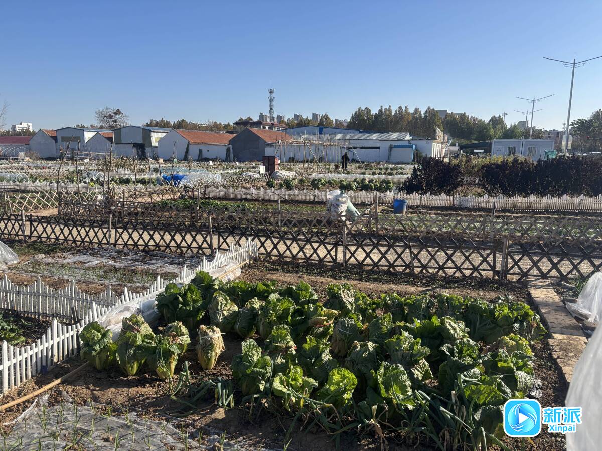 当日上午9时,记者跟随卢双来到他打造的“共享菜园”。只见一大片“共享菜园”被小栅栏分割成一个个小块菜园,每一块都标注了数字编号,认领菜园的居民正忙着给菜园搭保温棚,收获大白菜,忙得不亦乐乎。