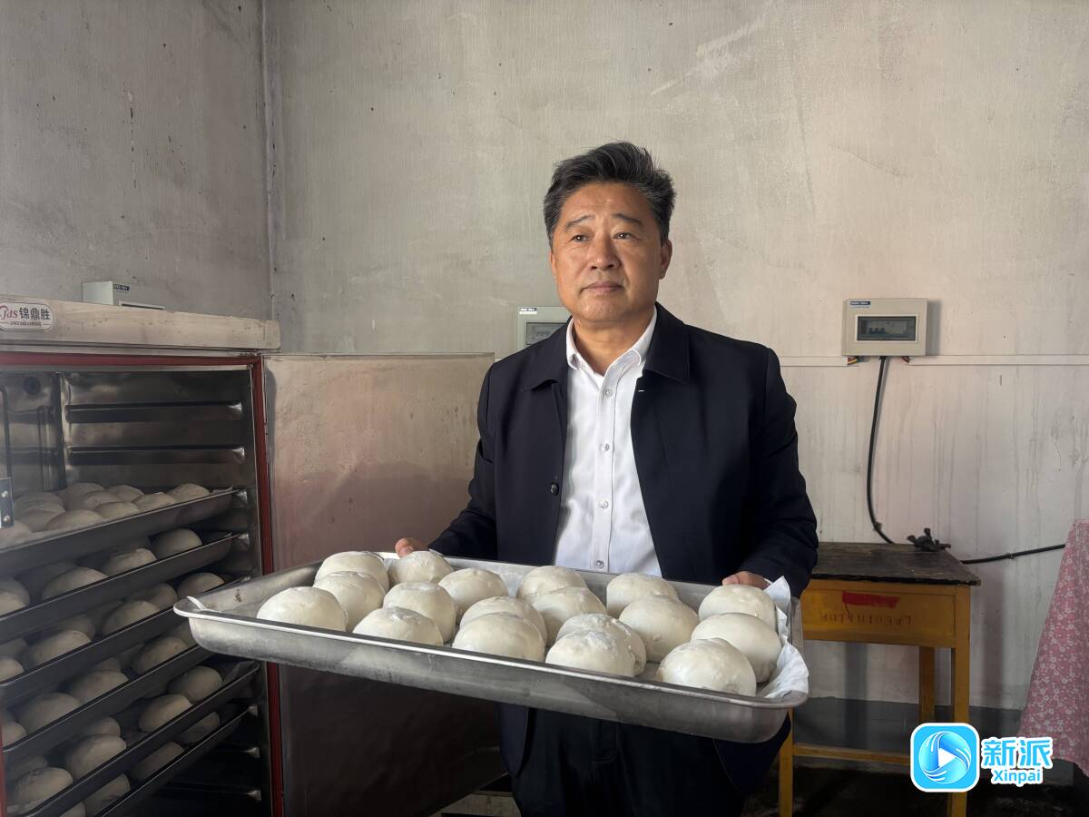 孙春财展示助老食堂工作人员为老人做的馒头。
