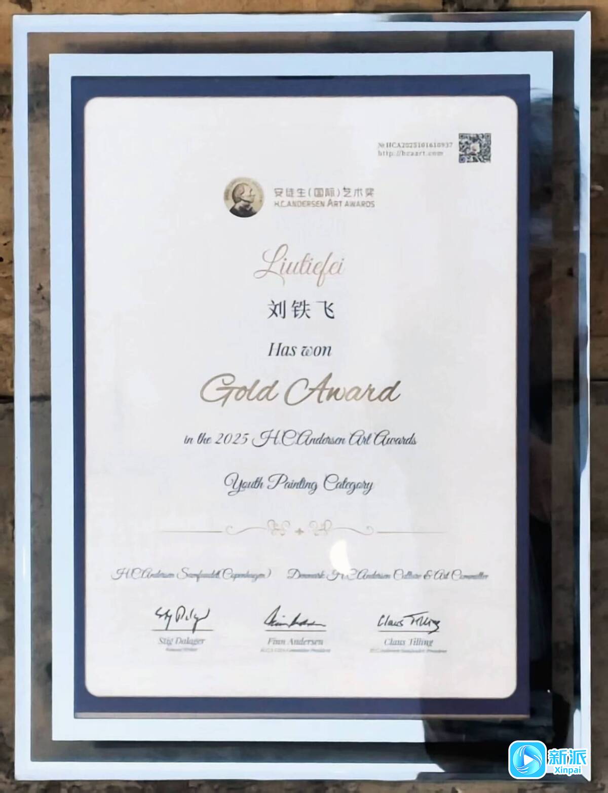 据悉,安徒生国际艺术奖是由丹麦安徒生文化艺术发展委员会等联合创立,是为了纪念安徒生在文化与艺术方面的成就而设置的一个高级别国际年度艺术奖。安徒生国际艺术奖拥有权威的评委会,并得到社会各界专家鼎力支持,增强了奖项的权威性和公信力。本届安徒生国际艺术奖以“FRIENDSHIP”(友谊)为主题,刘铁飞作为国际和平艺术家,其作品《友谊使者》完美契合了该主题,一举拿下评委会金奖,并被丹麦王国安徒生文化艺术发展委员会收藏。
