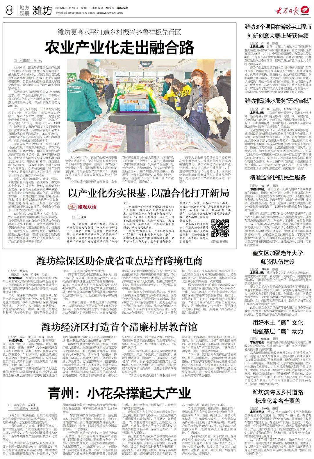 更高水平的乡村振兴,必然是融合发展的乡村振兴。以产业化夯实根基,以融合化打开新局,这条路,潍坊正扎实前行。
