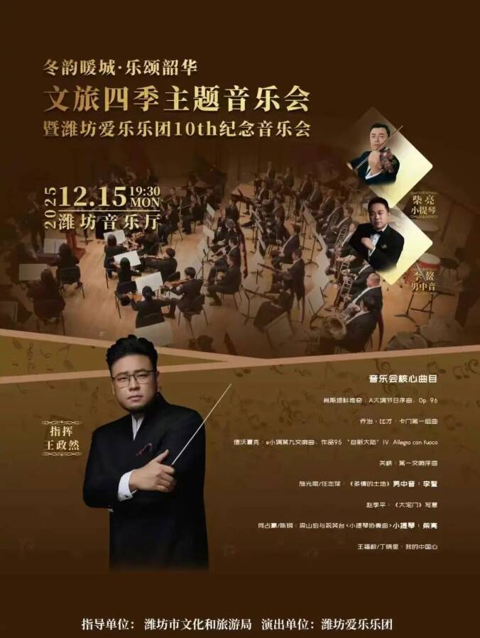 潍坊爱乐乐团倾情演绎经典名曲,视听盛宴、非遗集市、旅游推介,线上线下万人同赏,还能解锁市民艺术夜校的隐藏福利,艺术爱好者速来集合。