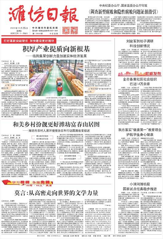 编者按 我市前期评选出的“40年·40人”杰出人物,涵盖经济社会发展的各领域各行业,是潍坊人民团结奋斗、实干担当的杰出代表。在冲刺收官“十四五”、谋篇布局“十五五”的关键节点,为全力营造学先模、鼓干劲的浓厚社会氛围,汇聚“走在前、挑大梁”的磅礴力量,鼓舞全市上下坚持以新发展理念为引领,砥砺奋进、攻坚克难,为加快建设更好潍坊书写精彩答卷,开设“学习榜样 争做先锋‘40年·40人’风采”栏目。