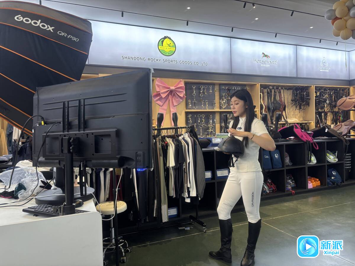 “这是我们的产品展示区,我们的年产量可达20万件。”跟随薛冰的脚步,记者走进公司的产品展厅,各类马术用品整齐摆放在架子上,让人目不暇接。不远处,两名工作人员正在镜头前直播,通过近距离地展示,让粉丝了解公司生产的马术用品。