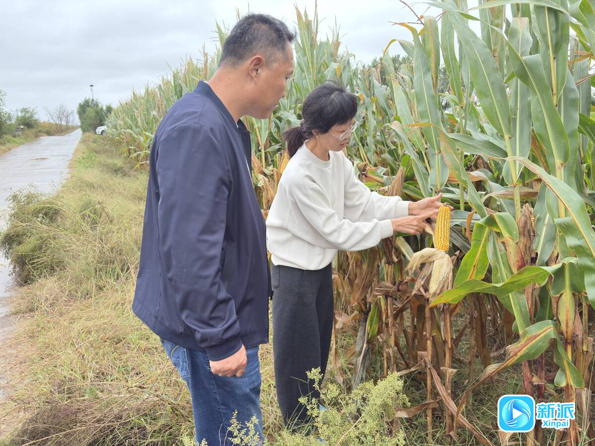 农技人员在潍坊创兴农业科技有限公司的玉米大田查看玉米灌浆情况。