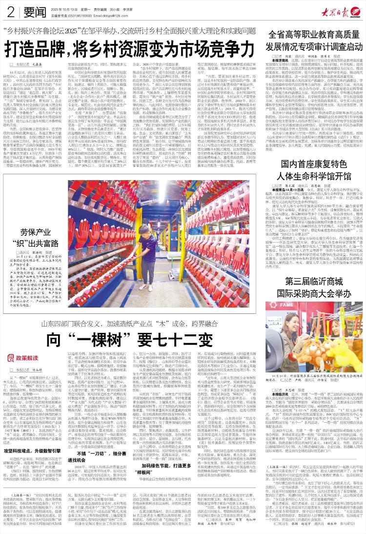 10月12日,由山东省人民政府发展研究中心、山东省农业农村厅(省乡村振兴局)、中共山东省委党校(山东行政学院)、滨州市人民政府共同主办的“乡村振兴齐鲁论坛2025”在邹平市举办。本届论坛以“锚定‘走在前、挑大梁’,高质量打造乡村振兴齐鲁样板”为主题。“三农”领域专家学者,有关部门、企业负责人等聚焦乡村全面振兴的重大理论和实践问题,深入开展研讨交流,为建设更高水平的“齐鲁粮仓”、提升乡村产业发展水平、建设宜居宜业和美乡村等提供智力支持,助力山东打造乡村振兴齐鲁样板提档升级。