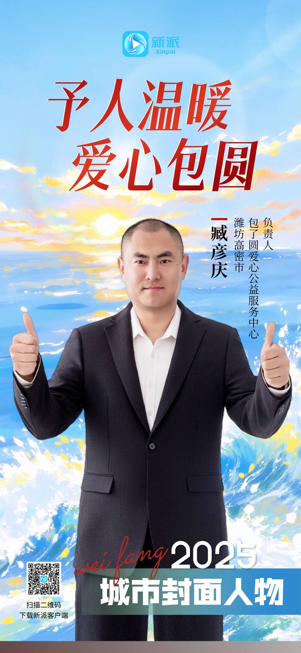 《2025城市封面人物》栏目,聚焦身边的感动,诠释潍坊城市精神,展现新时代潍坊人风采。通过开屏展示、平台热推,讲好潍坊故事,传播潍坊声音,让更多人看见“身边的榜样”,汇聚起推动更好潍坊建设的磅礴力量。活动由中共潍坊市委宣传部、中共潍坊市委社会工作部、潍坊市文明办主办,潍坊市融媒体中心承办。本期封面人物是潍坊高密市包了圆爱心公益服务中心负责人臧彦庆。