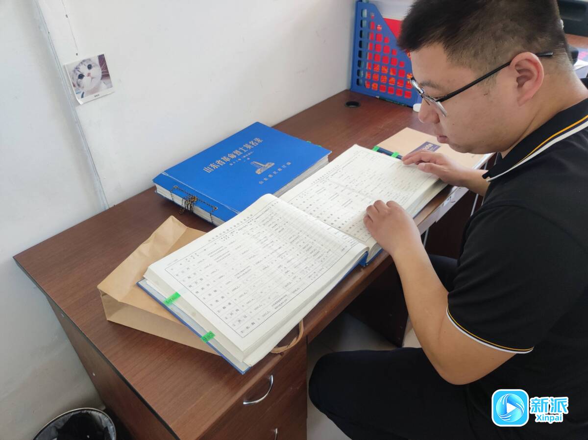 王帅康在潍坊市革命烈士陵园查找资料。