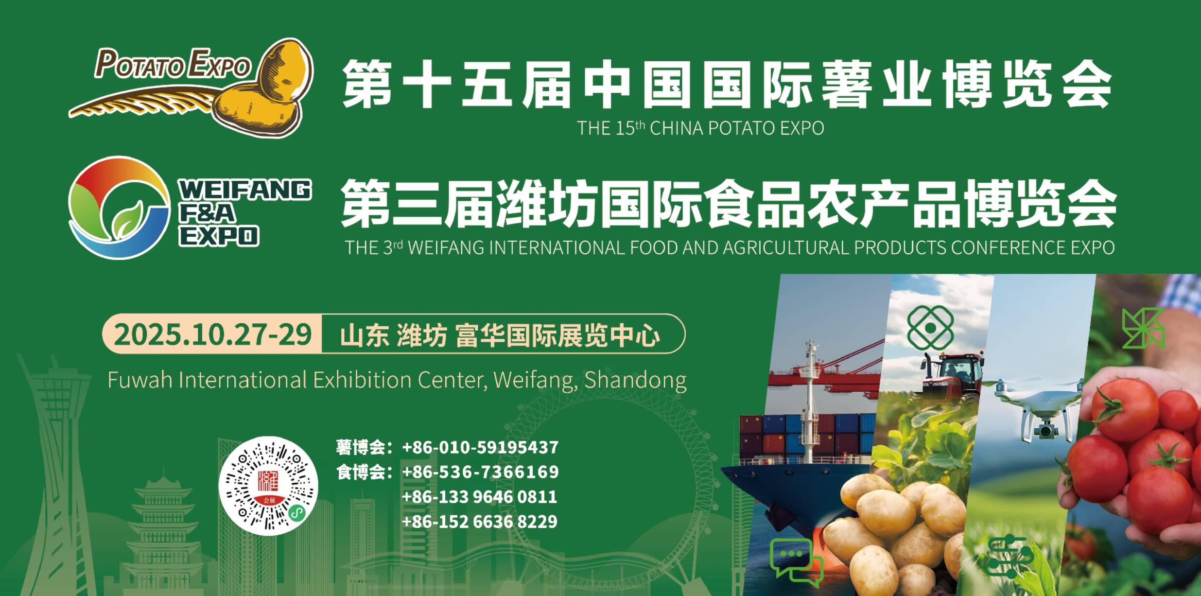 金秋送爽,硕果盈枝。第十五届中国国际薯业博览会、第三届潍坊国际食品农产品博览会,将于10月27日-29日在潍坊富华国际展览中心盛大举办。“双博”盛会,将集中展示农食产业前沿成果,搭建交流合作平台,助力产业链上下游精准对接,进一步推动农食产业高质量发展。