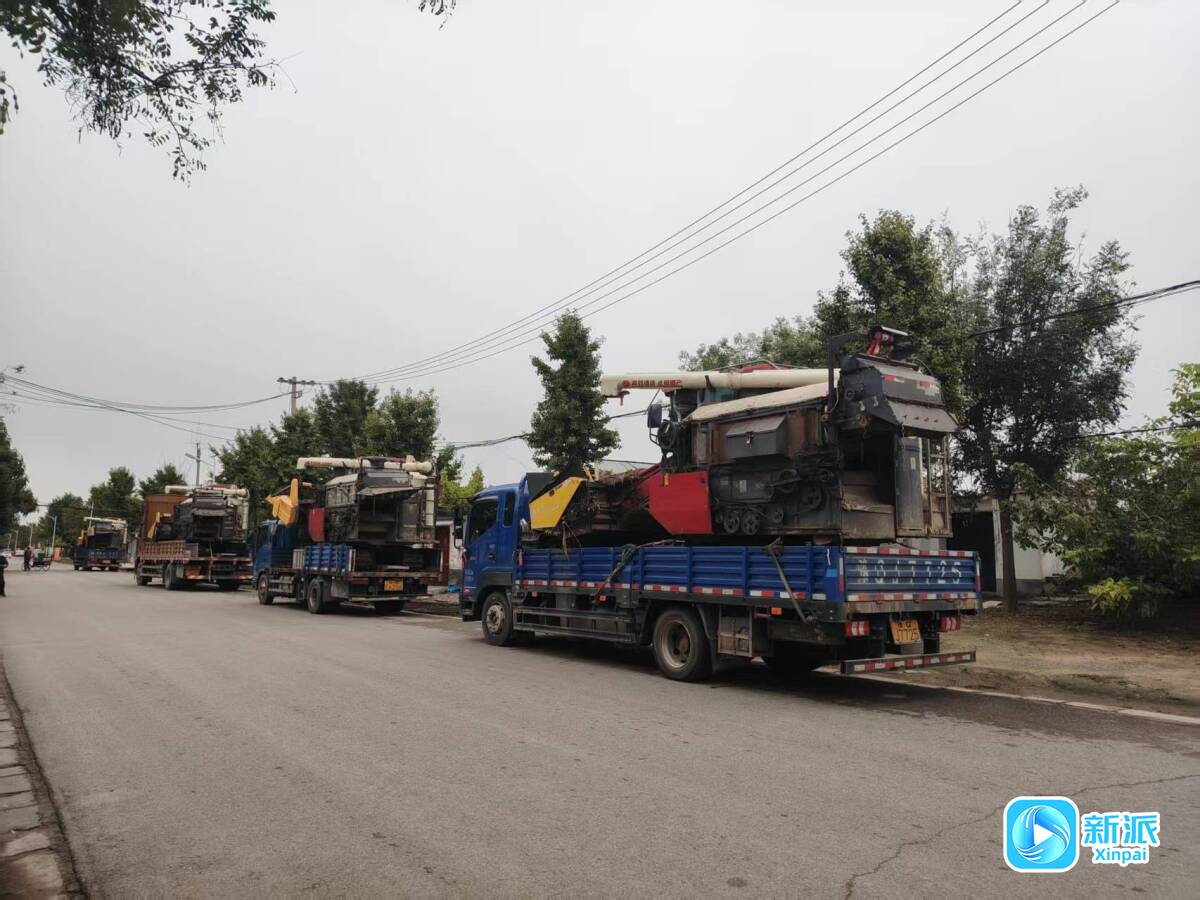 潍城区调集玉米收获机械帮助农民抢收粮食。