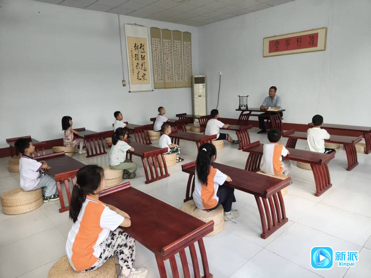 朱位村退休教师为前来研学的孩子介绍状元文化。