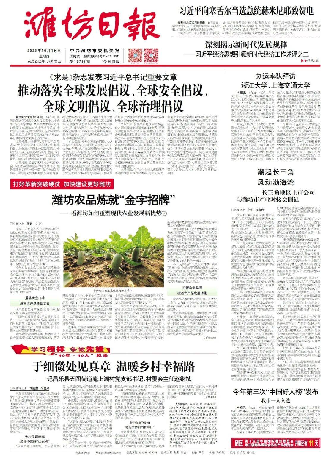 编者按 我市前期评选出的“40年·40人”杰出人物,涵盖经济社会发展的各领域各行业,是潍坊人民团结奋斗、实干担当的杰出代表。在冲刺收官“十四五”、谋篇布局“十五五”的关键节点,为全力营造学先模、鼓干劲的浓厚社会氛围,汇聚“走在前、挑大梁”的磅礴力量,鼓舞全市上下坚持以新发展理念为引领,砥砺奋进、攻坚克难,为加快建设更好潍坊书写精彩答卷,开设“学习榜样 争做先锋 ‘40年·40人’风采”栏目。