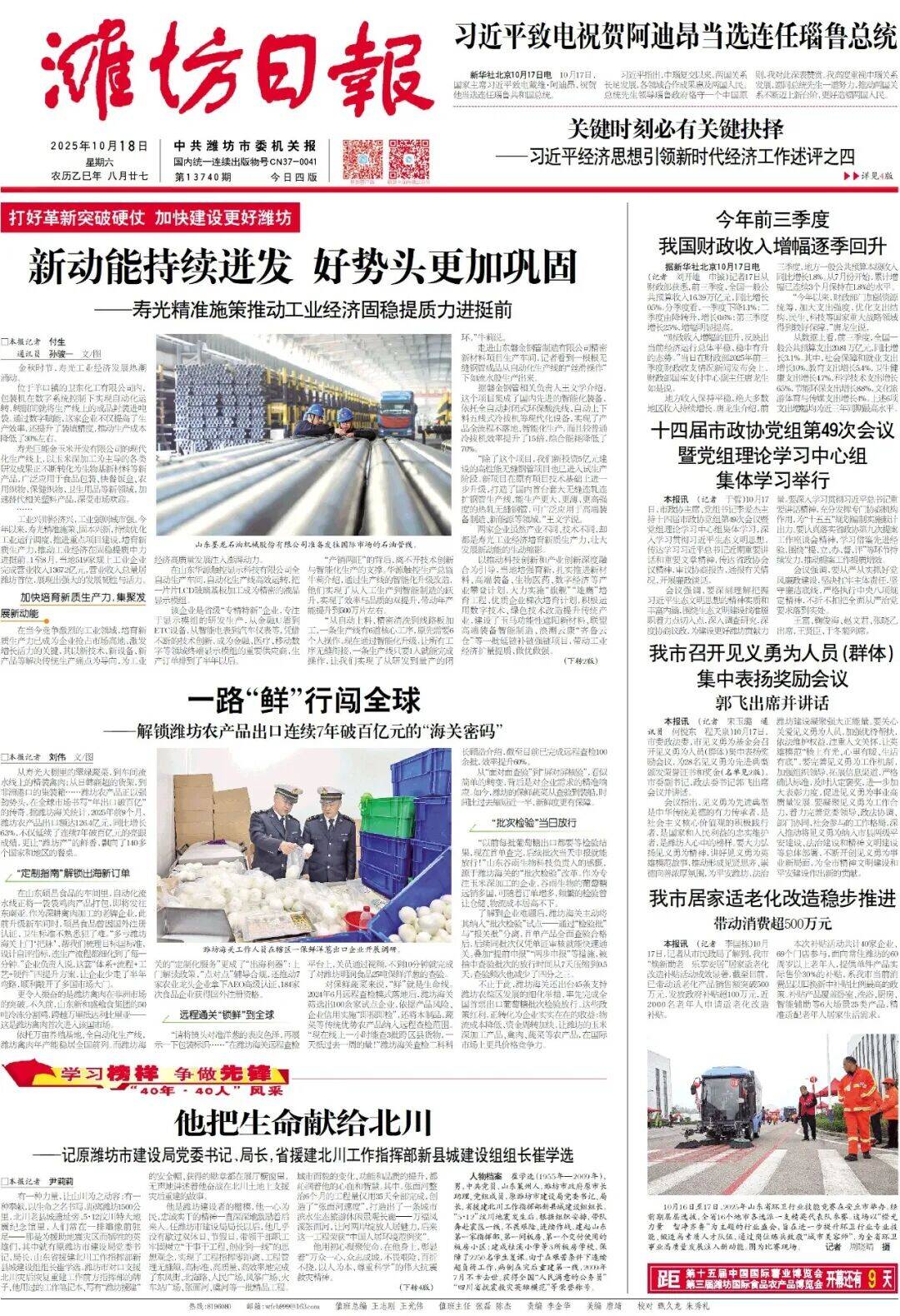 编者按 我市前期评选出的“40年·40人”杰出人物,涵盖经济社会发展的各领域各行业,是潍坊人民团结奋斗、实干担当的杰出代表。在冲刺收官“十四五”、谋篇布局“十五五”的关键节点,为全力营造学先模、鼓干劲的浓厚社会氛围,汇聚“走在前、挑大梁”的磅礴力量,鼓舞全市上下坚持以新发展理念为引领,砥砺奋进、攻坚克难,为加快建设更好潍坊书写精彩答卷,开设“学习榜样 争做先锋 ‘40年·40人’风采”栏目。