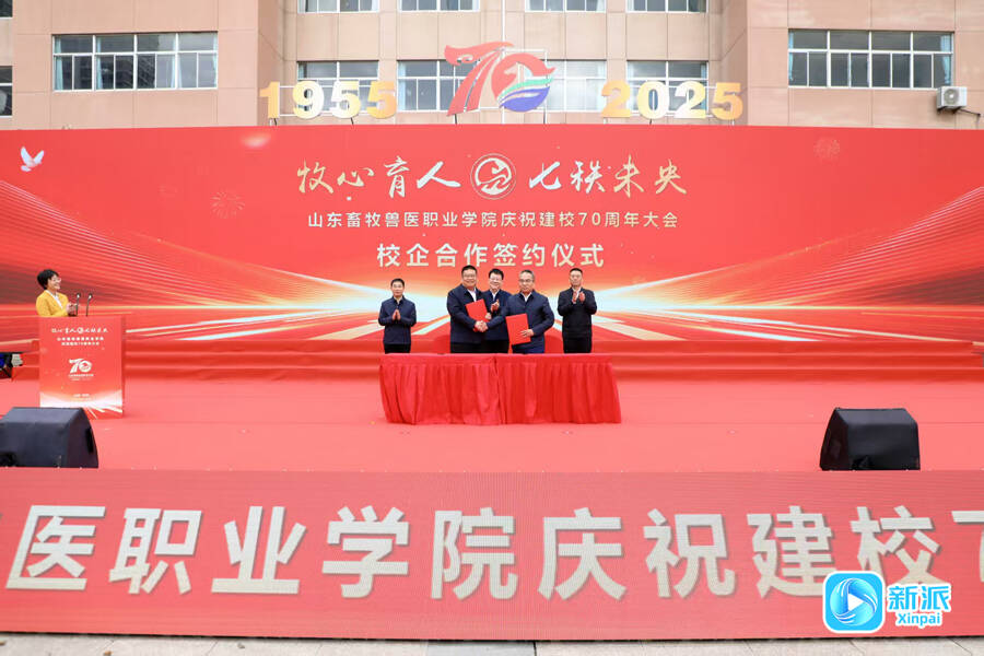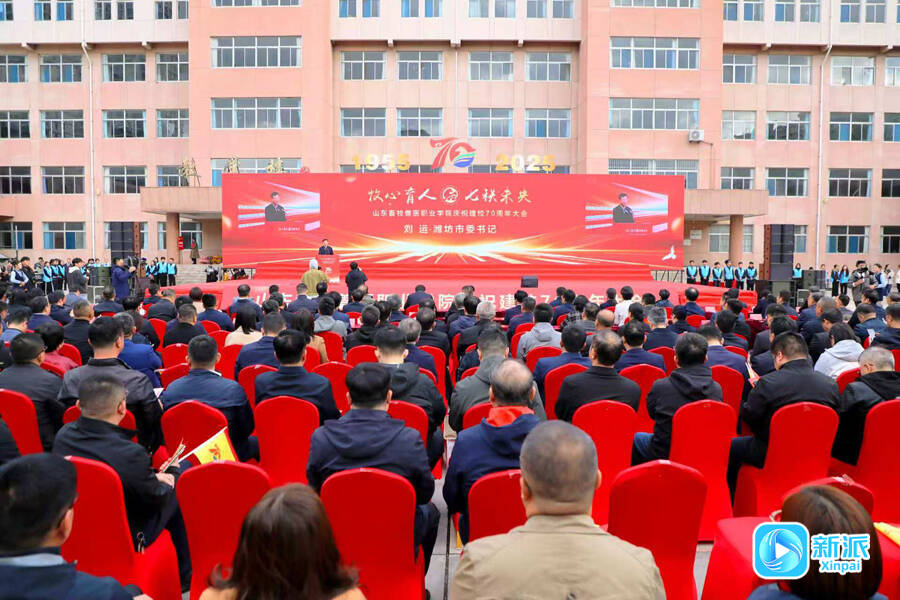 新派讯 10月18日上午,山东畜牧兽医职业学院庆祝建校70周年大会举行。省政协副主席、省中华职教社主任段青英出席并讲话;省农业农村厅党组书记、厅长张红旗,省教育厅总督学王志刚,市委书记刘运致辞;市政协原主席赵兴涛,省畜牧兽医局党组书记、局长鲁波,市领导吕珊珊、陈端梅,山东畜牧兽医职业学院领导张刚、张乃清参加。