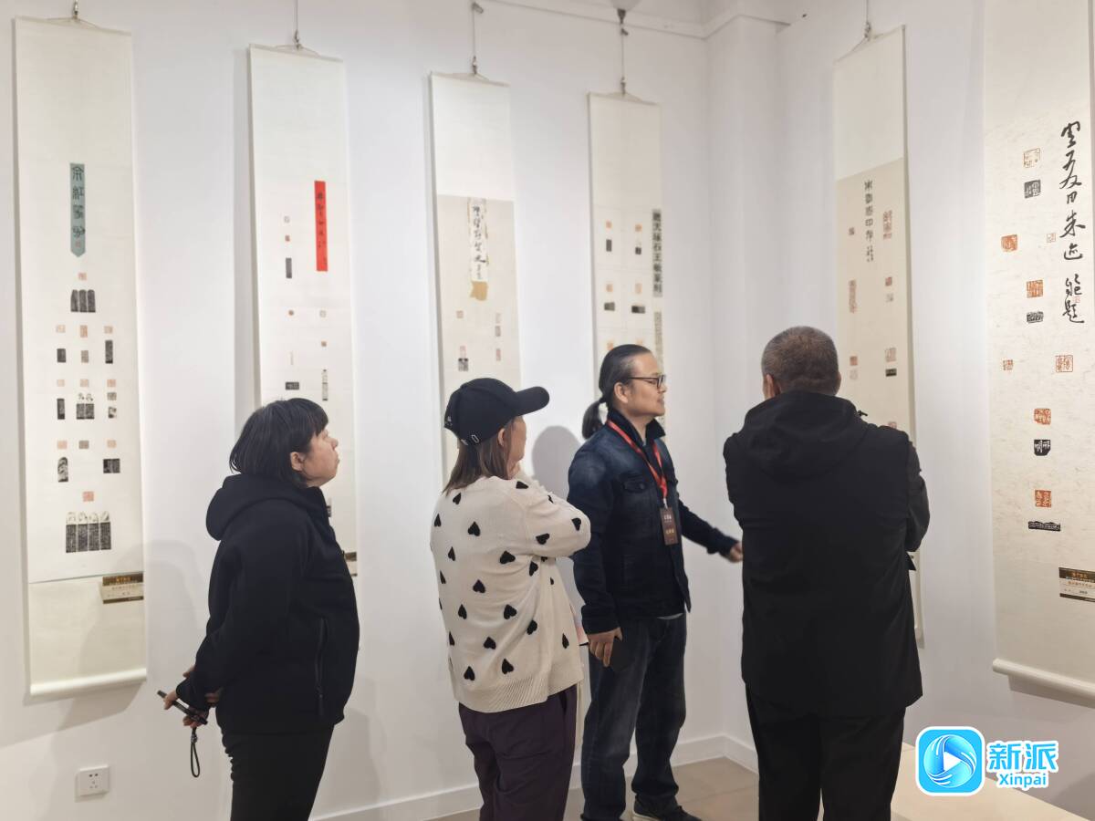 当天上午10时许,记者走进展厅,只见一方方印屏错落陈列,篆刻作品或苍劲古朴,或灵动新锐,既深植秦汉印风的传统根基,又迸发着锐意进取的创新火花。徐正濂俯身于展柜前,细致点评学生们的作品,围站的学生神情专注。“这些学生不仅自身艺术造诣日臻精进,更成功培育出新一代篆刻力量,他们的学生在全国篆刻大展中屡获佳绩。长江后浪推前浪,篆刻的文脉就在这代际接力中生生不息。”徐正濂望着作品,语气中满是欣慰。