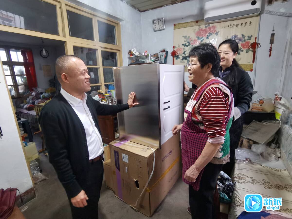 爱心单位给韩立秋老人送来了橱柜等新的家居用品。