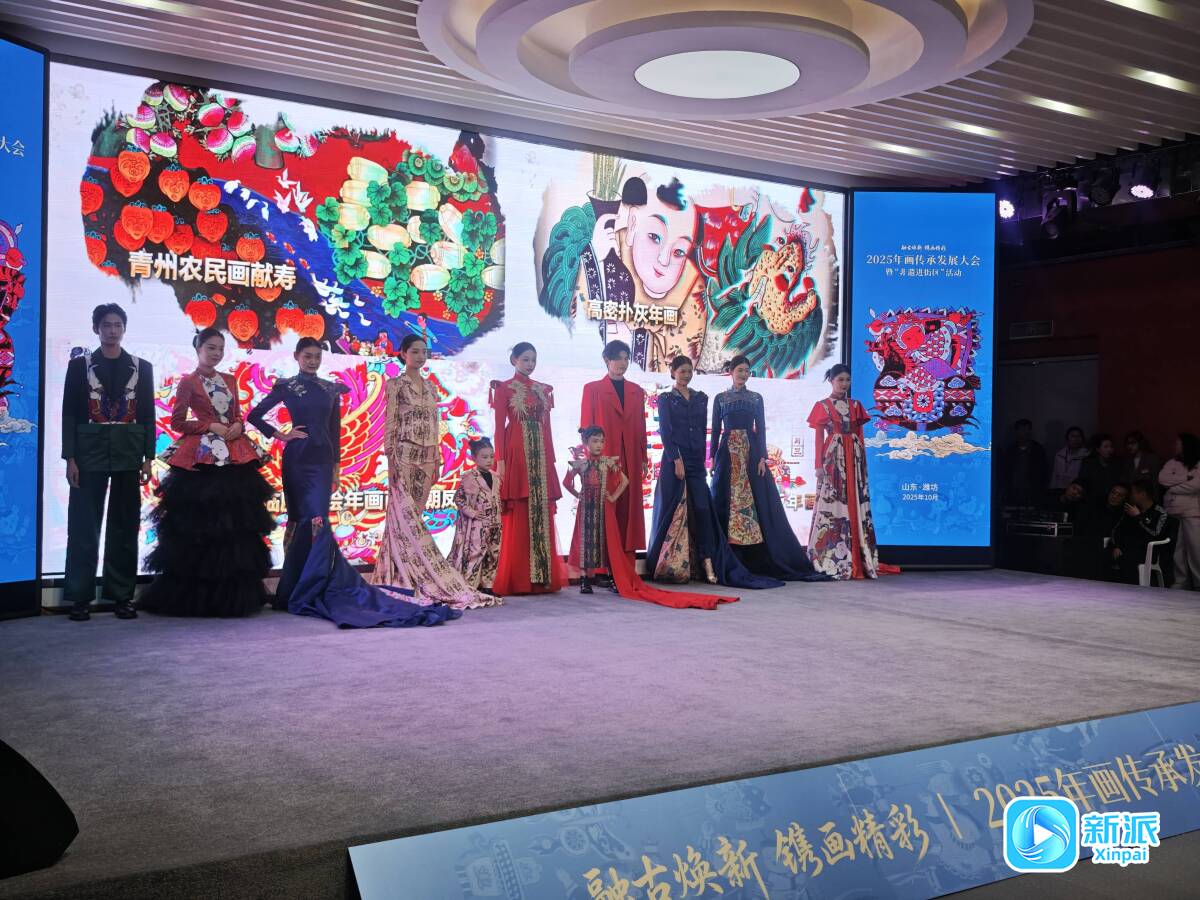 开馆当天,2025年画传承发展大会暨“非遗进街区”活动同步启动。活动由中国非物质文化遗产保护协会、山东省文化和旅游厅主办,潍坊市文旅局等单位承办,现场不仅有18个全国主要年画产地保护单位共同发起传承倡议,还发布了《2025山东省非遗IP应用典型案例》、2025年全省非遗文创设计大赛获奖名单,为部分潍坊第六批国家级非物质文化遗产代表性传承人颁发奖牌证书,精彩的年画走秀展示更将现场氛围推向高潮。