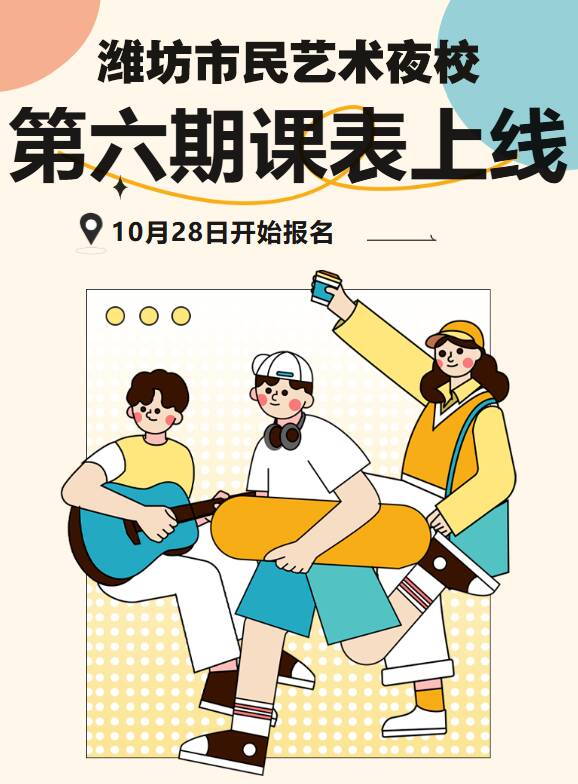 盼望着,盼望着,潍坊市民艺术夜校第六期终于要和大家见面啦!这一期我们准备了更多元化的课程、更贴心的报名福利,只为让你的业余生活更加丰富多彩。快来一起看看本期的精彩内容吧!