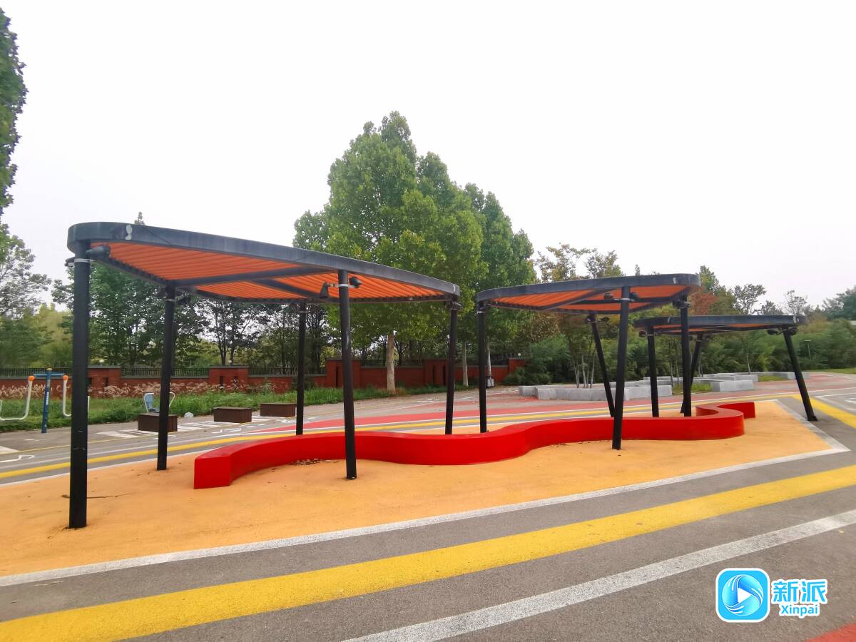 园区空间宽阔通透,不仅有广场等活动空间,还设置了廊架、坐凳、文化雕塑及各类景观小品,同时配备了丰富的健身设施与休闲座椅、果皮箱等便民服务设施。园区与相邻的校园有机融合,即为师生增添了一个休闲游玩、放松身心的好去处,也为周边市民提供了舒适的休憩、健身环境。